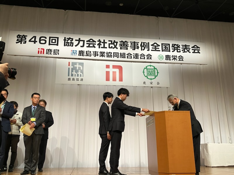 東京都江東区にあるホテルイースト21にて開催された「第46回協力会社改善事例全国発表会」にて弊社の発表が安全・担い手部門の鹿栄会会長賞に選出されました。